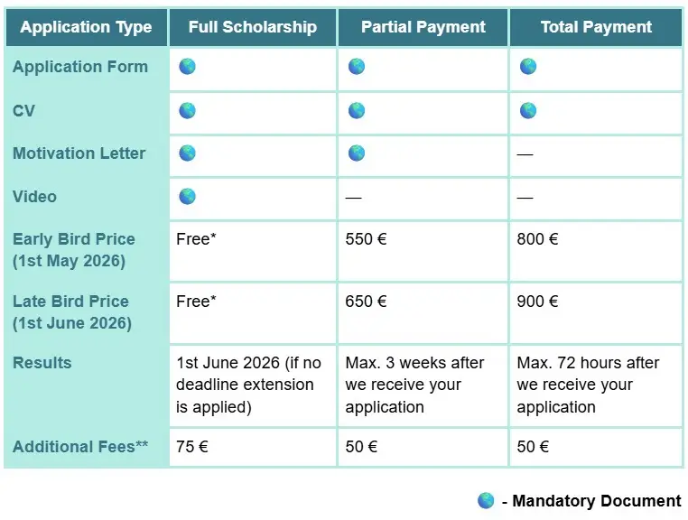 *Please Note: Regardless of the payment option you choose, the BSU organizing team will provide the following throughout the program: accommodation, three meals per day, transportation from the airport upon arrival, a weekend trip (including accommodation, meals, and transport), academic courses, and extracurricular activities. None of the payment options cover your travel expenses to and from Romania.